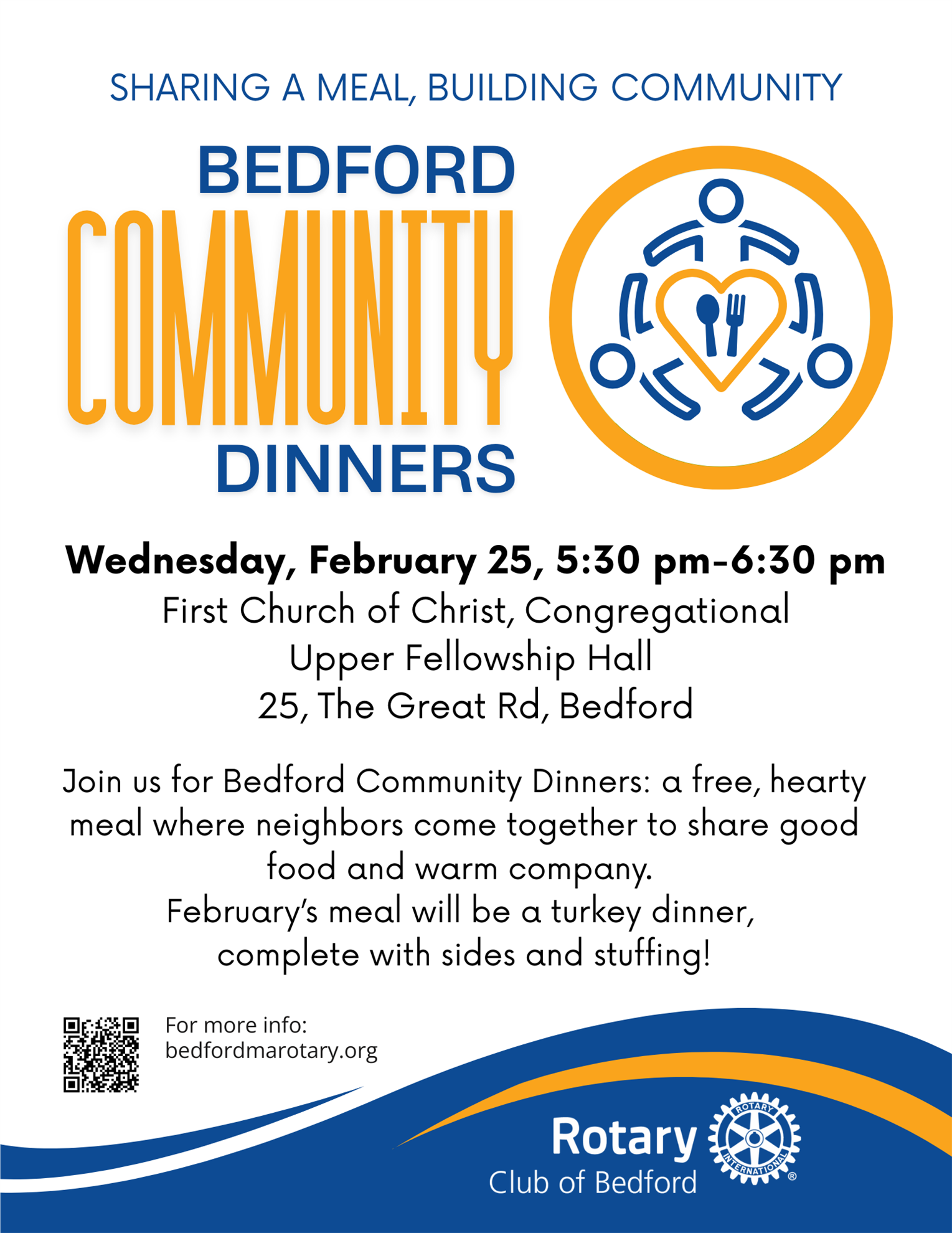 Our next Community Dinner is scheduled for Wednesday, March 25th. Planning meetings to start soon.