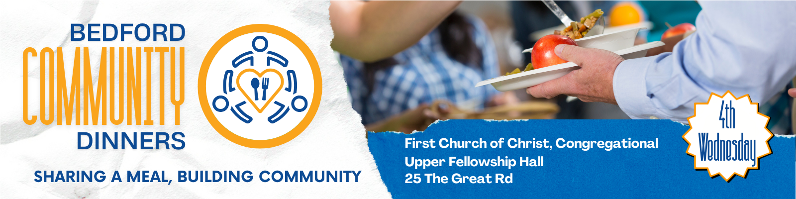 The dinners are hosted by the Rotary Club of Bedford in partnership with local organizations, businesses, and volunteers.